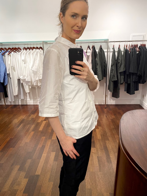 Die neue "Small Blouse" - eine Basic Bluse in schmaler Passform. Die 3/4 Ärmel lassen sich bequem krempeln. Der kleine Kragen lässt sich entspannt offen oder charmant hochgeschlossen tragen. Rückenlänge ca. 64cm.